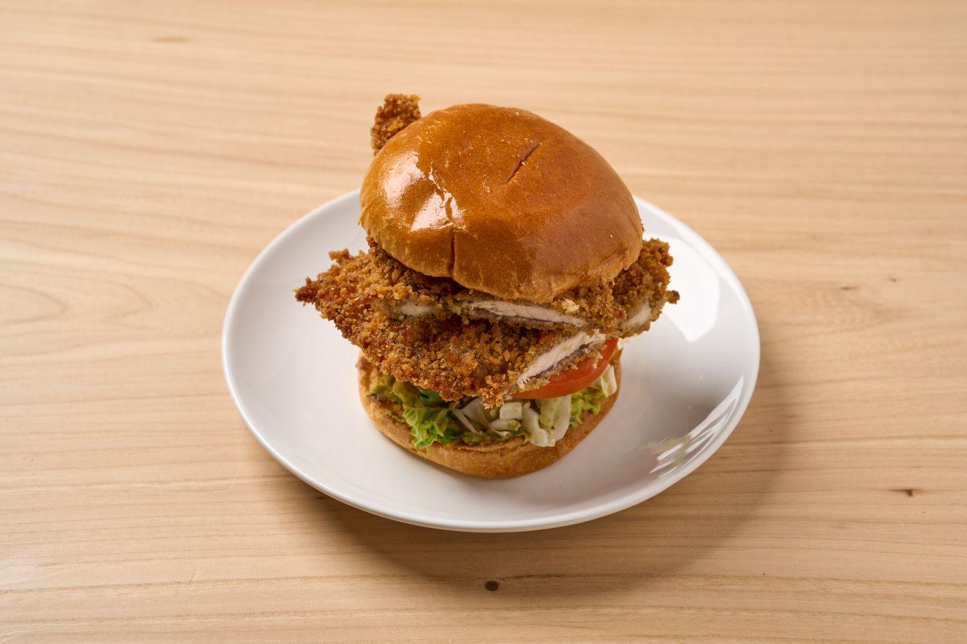 Fried Chicken cutlet, tomato, avocado mayo, purple cabbage