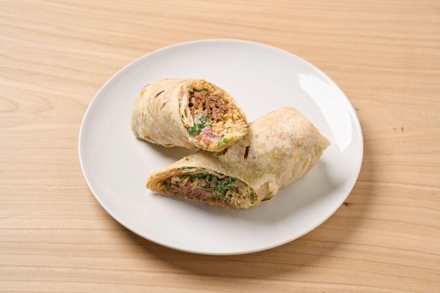 tomato, cucumber, olives, arugula, mint, wrapped in a lavash bread